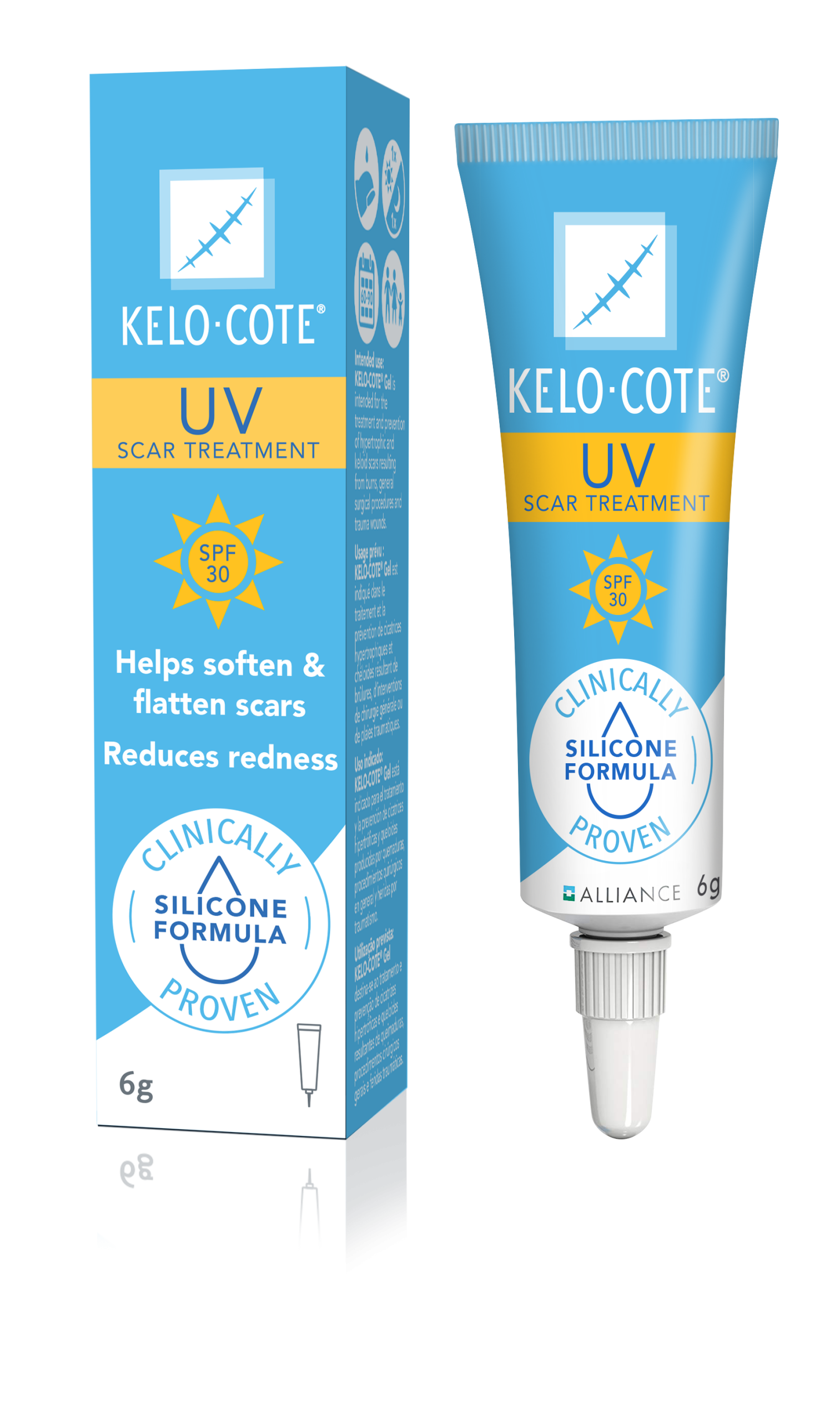 KELO-COTE® UV cu SPF 30 este un gel siliconic cu formulă avansată, special dezvoltat pentru a proteja cicatricile împotriva efectelor nocive ale soarelui. Acest lucru este important deoarece, indiferent de culoarea pielii, cicatricile nu conțin melanină – pigmentul care protejează pielea de radiațiile UV. Astfel, expuse la soare, cicatricile pot deveni mai roșii și pot dezvolta hiperpigmentare.
